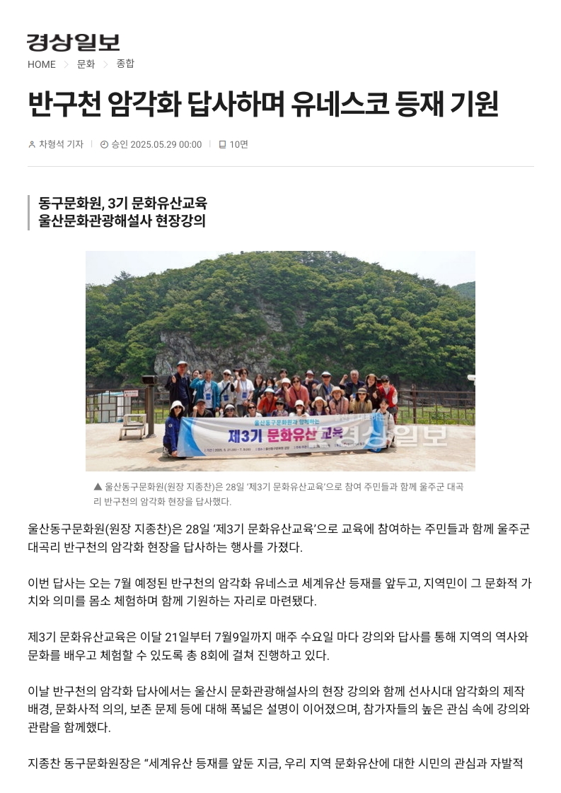 다음글 [경상일보] 울산동구문화원, 제3기 문화유산교육 개강