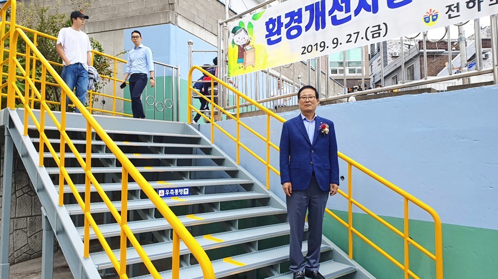 울산동구문화원 원장인 지종찬 동울산새마을금고 이사장이 전하초 후문계단 안전통학로 조성을 위해 4,000만원 상당의 사비를 들여 후원해 훈훈한 미담이 되고 있다.